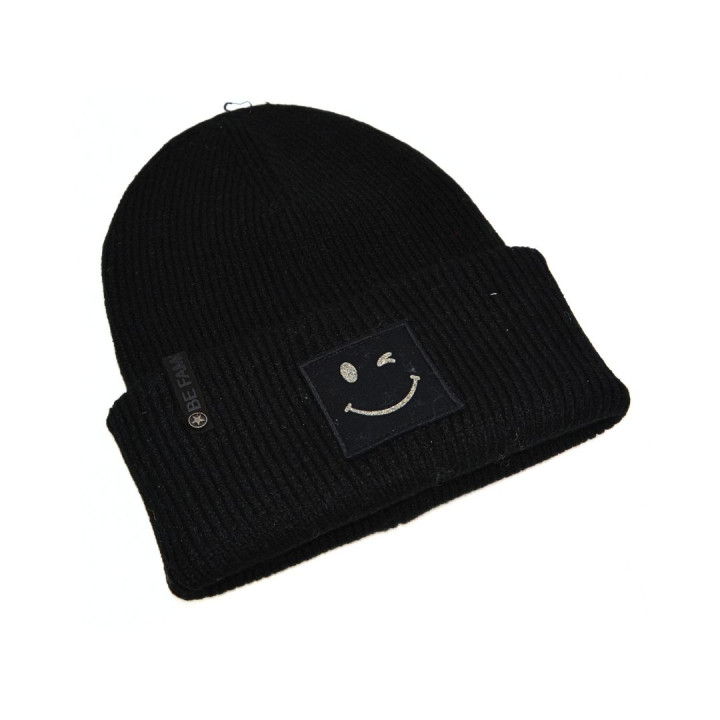 Mütze Beanie mit Umschlag | Smilie | schwarz