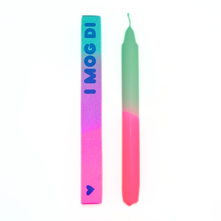 knallig bunte Kerzen mit Botschaft | "I mog di"