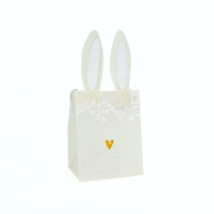 Verschenke hasige Grüße mit dieser Tasche mit Hasenohren, zarter Stickerei und einem goldenen Herz auf der Vorderseite und einem verspielten puscheligen Pompom auf der Rückseite.