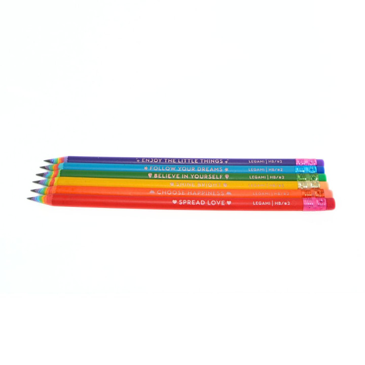 Starte jeden Tag mit einer Portion guter Laune! Das 6er Set "Happiness for Every Day" von Legami bringt nicht nur Farbe, sondern auch positive Energie auf deinen Schreibtisch. Jeder Bleistift trägt einen inspirierenden Spruch, der dich motiviert und ein Lächeln schenkt - perfekt für Schule, Uni, Büro oder Zuhause.