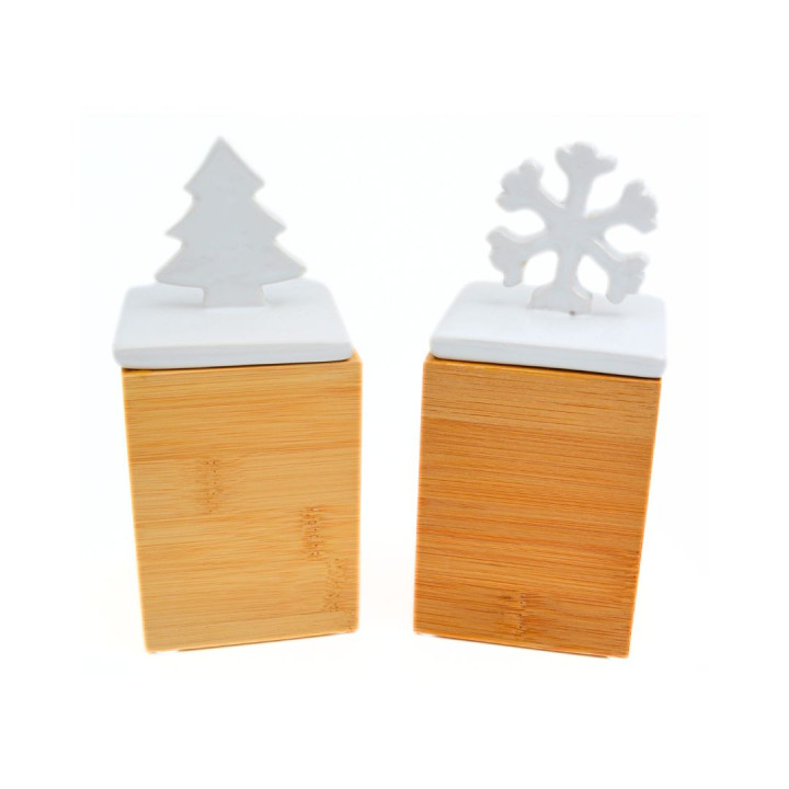 Holzdose mit Keramikdeckel | Baum oder Schneeflocke