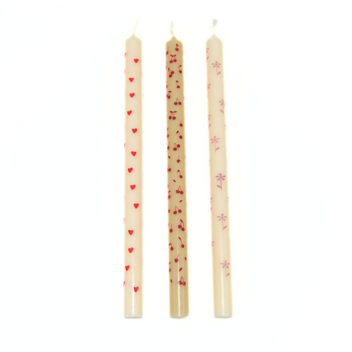dünne Stabkerzen mit zarten Motiven